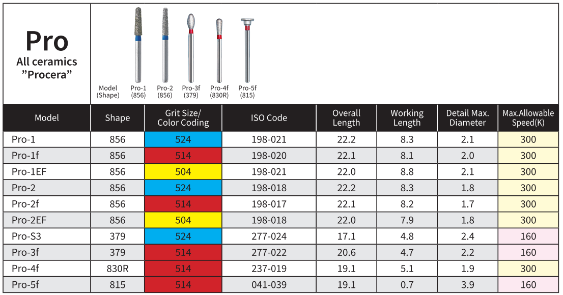 Dòng sản phẩm: PRO – All Ceramics “Procera” Diamond Burs
